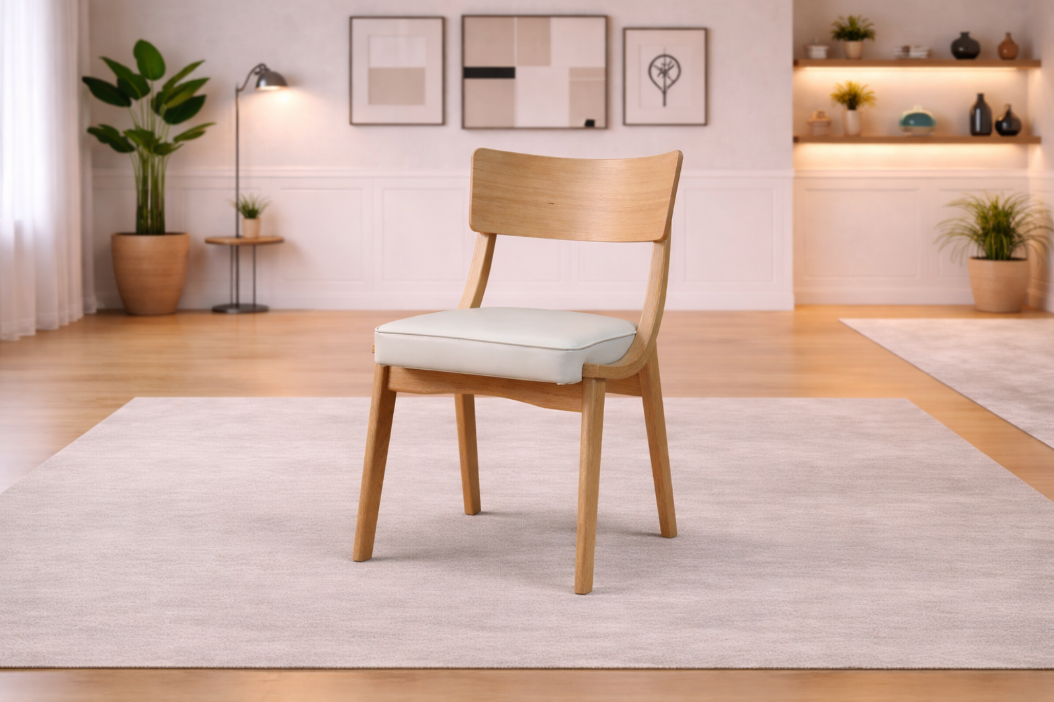 כיסא בונו מעוצב בסגנון מודרני ונקי המשלב עץ טבעי עם מושב מרופד לנוחות מקסימלית. הכיסא עשוי מעץ אלון איכותי המעניק מראה חמים ועמידות לאורך שנים. מושב הכיסא מרופד בדמוי עור בצבע לבן קרם המוסיף תחושת רכות ונוחות בזמן הישיבה. בזכות העיצוב האלגנטי והקווים המעוגלים, כיסא בונו משתלב בצורה מושלמת בפינות אוכל, מטבחים וחללי אירוח בעיצוב מודרני או סקנדינבי.
