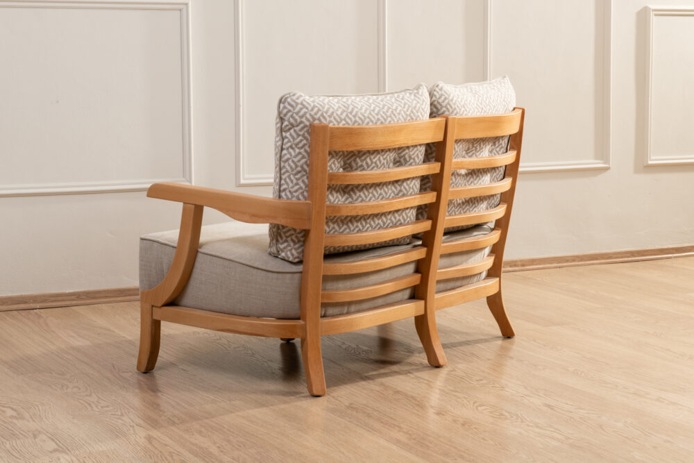 דו־מושבי 701 הוא פריט ישיבה אלגנטי ונוח בעיצוב סקנדינבי חמים, המשלב שלד עץ טבעי עם ריפוד בד איכותי בגוונים בהירים. הקווים המעוגלים של הידיות, בסיס העץ היציב והכריות המרופדות יוצרים מראה מזמין ונעים, המתאים לישיבה יומיומית. הדו־מושבי משתלב בצורה מושלמת בסלון, בפינת ישיבה, בחדר אורחים או במבואת כניסה, ומוסיף לחלל תחושה טבעית, רגועה ומעוצבת.