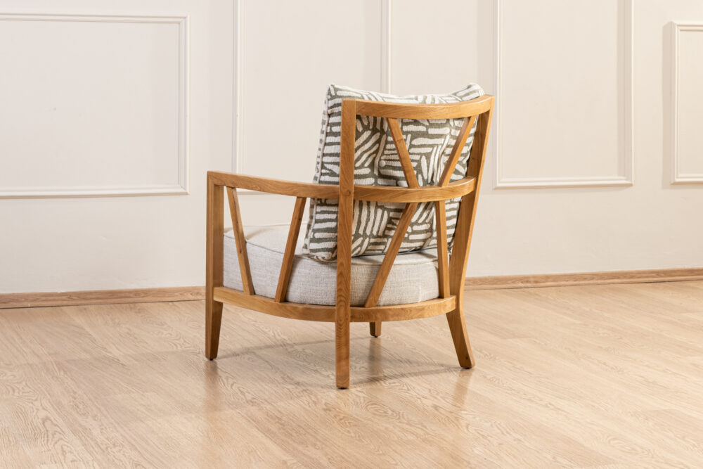 כורסאת אלון משלבת עיצוב סקנדינבי נקי עם תחושת חמימות טבעית ונוחות גבוהה לישיבה יומיומית. הכורסה בנויה משלד עץ מלא בגימור טבעי, עם קווים ישרים ואלגנטיים המדגישים את איכות החומר והעבודה. המושב מרופד בבד איכותי בגוון בהיר ונעים, ומשענת הגב כוללת כרית רכה עם דוגמה גרפית עדינה שמוסיפה עומק ועיצוב ייחודי. משענות היד הרחבות מעניקות תמיכה נוחה ומשלימות מראה טבעי ומאוזן. כורסאת אלון מתאימה לסלון, לפינת קריאה או לחדר שינה ומכניסה אווירה רגועה ומעוצבת לכל חלל.