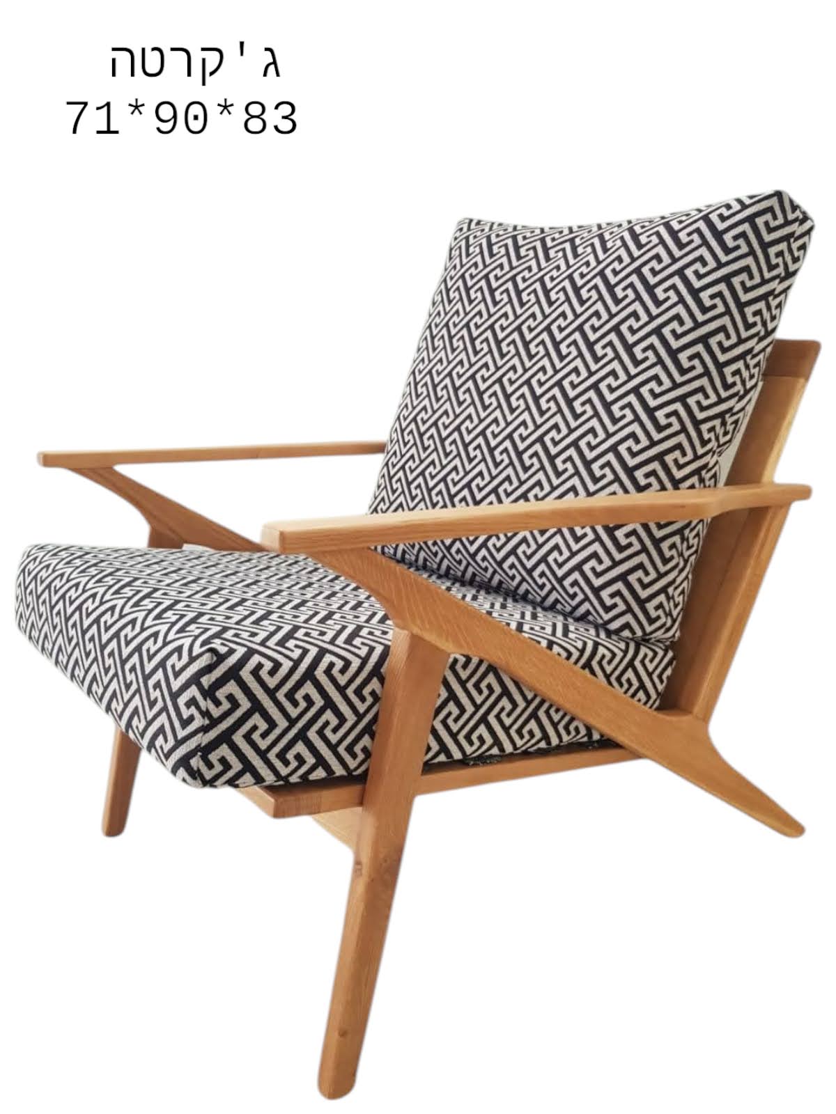 כורסאת גקרטה מציעה עיצוב מודרני עם ריפוד בד בגוון שחור-לבן עם דוגמת גיאומטרית מעודנת, בשילוב מסגרת עץ טבעי. הכורסה מצוידת במושב מרופד וגב תומך שמספקים נוחות רבה, והידיות המובנות והקווים הזורמים נותנים לכורסה מראה קליל אך אלגנטי. כורסאת גקרטה משתלבת בצורה מושלמת בסלון, חדר עבודה או פינת ישיבה, ומוסיפה לכל חלל נגיעה של יוקרה וסטייל מודרני.