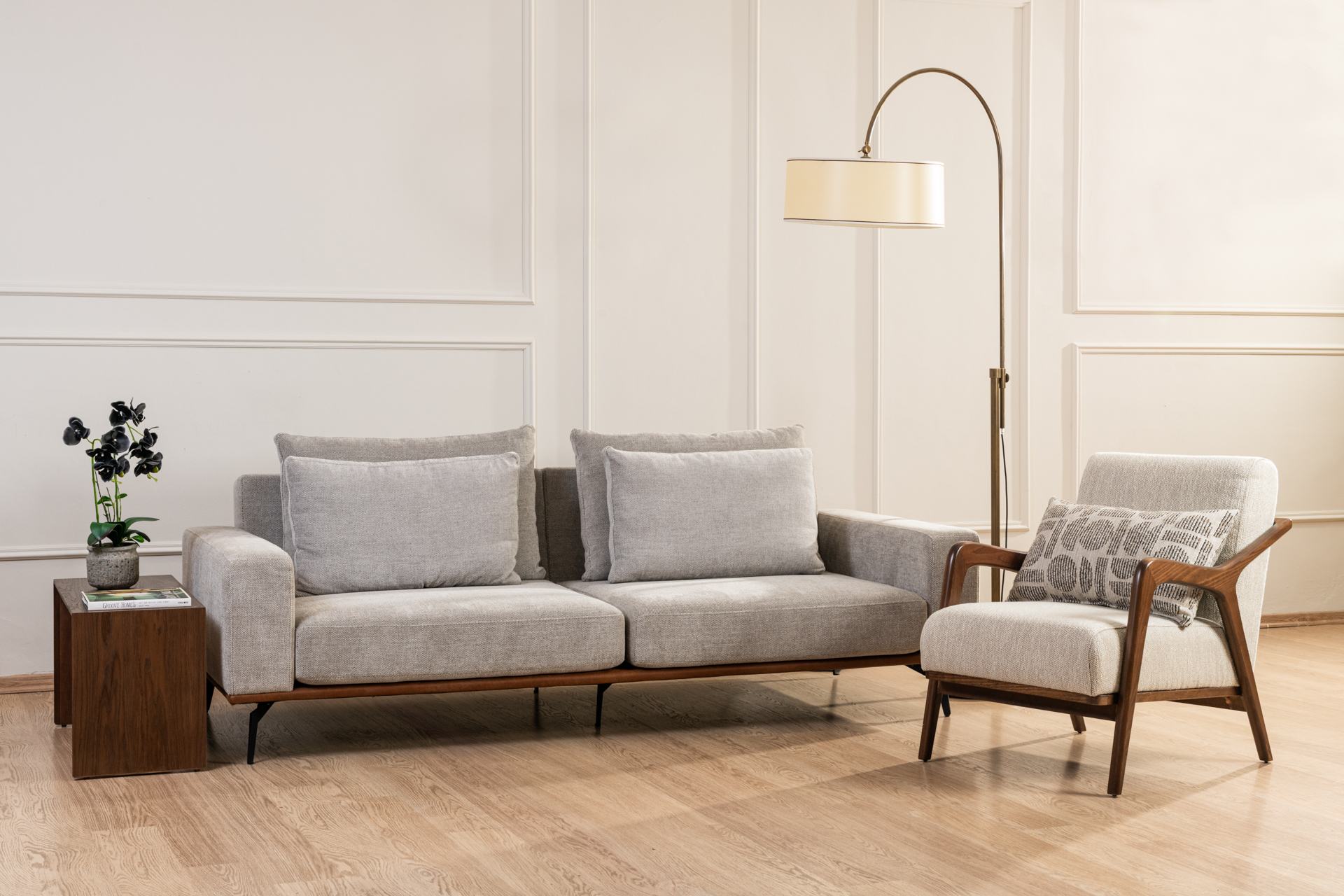 ספת רקפת משלבת עיצוב מודרני אלגנטי עם תחושת חמימות טבעית ונוחות גבוהה ליום־יום. הספה מרופדת בבד איכותי בגוון בהיר ונעים, המעניק מראה רך ומאוורר לחלל הסלון. שלד עץ בגימור חמים משולב בקווים נקיים, ומדגיש את האופי המעוצב והעל־זמני של הספה. המושב הרחב והכריות המרופדות מספקים תמיכה ונוחות לישיבה ממושכת, בעוד רגלי המתכת הדקות מעניקות מראה קליל ומודרני. ספת רקפת מתאימה לסלון מרכזי, לחלל אירוח או לשילוב עם כורסה תואמת מאותו דגם.