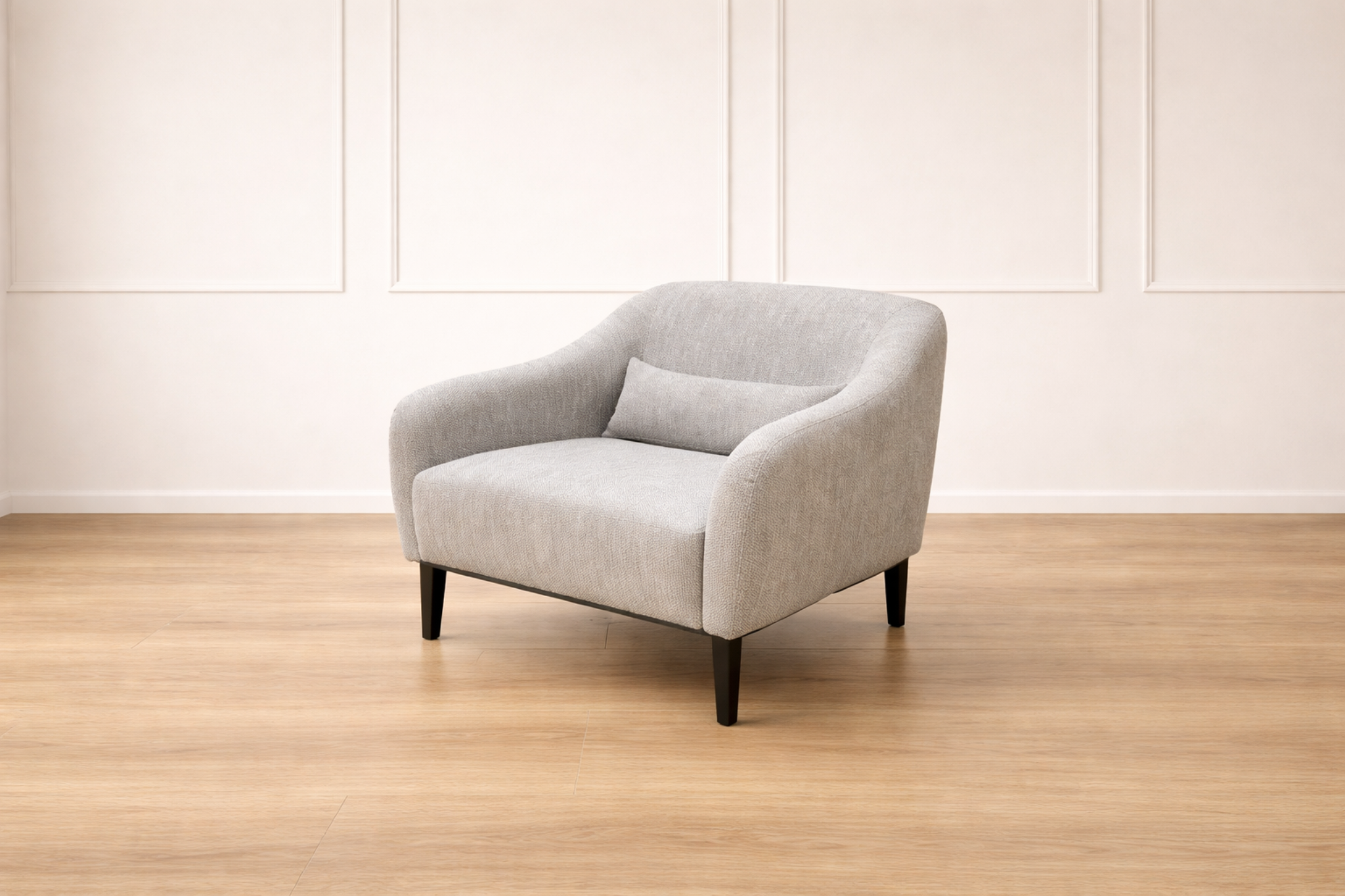 כורסאת סקארלט מציעה שילוב מושלם של נוחות ועיצוב אלגנטי. ריפוד הבד בגוון אפור קל ונעים משתלב עם רגליים מעץ כהה, ומעניק לכורסה מראה מעודן ומודרני. ידיות הכורסה המעוגלות והקווים המעודנים יוצרים אווירה רכה ומזמינה, מושלמת לפינת ישיבה או סלון. עם מושב רך ונעים, כורסאת סקארלט מתאימה לכל חדר ומוסיפה לו תחושת חום ונוחות.